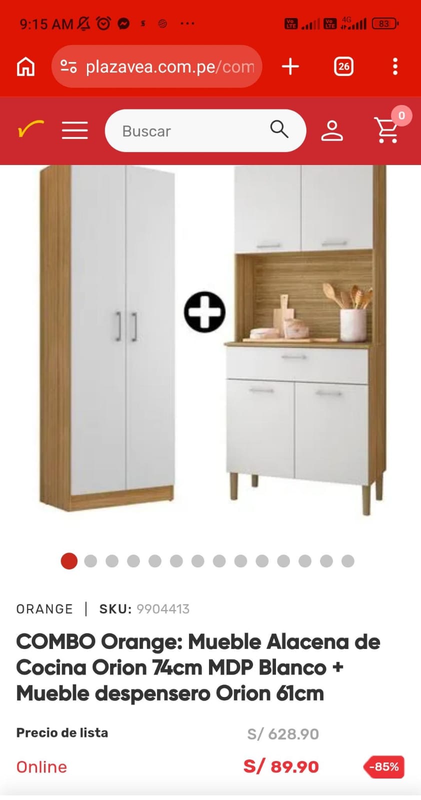 Aprovecha esta oferta increíble en el Combo Orange, que incluye un mueble alacena de cocina y un mueble despensero. Ideal para optimizar tu espacio en la cocina. ¡No te lo pierdas! Compartido por: DaF 💙Tienda: PlazaVea